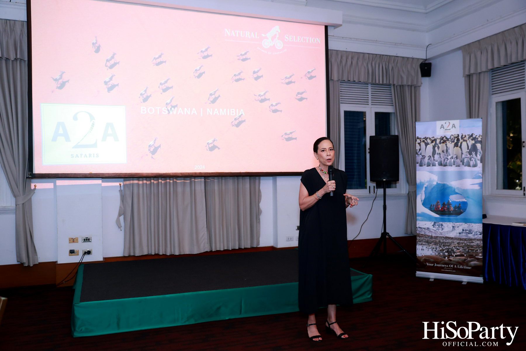 A2A Safaris บริษัทตัวแทนท่องเที่ยวสุดหรูที่มีชื่อเสียงเป็นที่รู้จักกันทั่วโลก จัดกิจกรรมสุดพิเศษที่แสดงให้เห็นถึงความมหัศจรรย์ของประเทศบอตสวานา (Botswana) และนามิเบีย (Namibia) สองจุดหมายปลายทางที่มีความสวยงามและมีภูมิประเทศที่โดดเด่นที่สุดของทวีปแอฟริกา โดยมี คุณปีเตอร์ อัลลิสัน (Peter Allison) ไกด์ซาฟารีชื่อดัง ทั้งยังเป็นผู้ช่ำชอง และชื่นชอบในการเล่าเรื่อง มาแบ่งปันเรื่องราวและประสบการณ์อันน่าสนใจ รวมถึงความเข้าใจอันลึกซึ้งเกี่ยวกับสัตว์ป่า และวิวทิวทัศน์อันน่าทึ่งของประเทศบอตสวานาและนามิเบีย ซึ่งการเดินทางของคุณปีเตอร์ อัลลิสัน จากบ้านเกิดที่นครซิดนีย์ ไปสู่การเป็นไกด์ซาฟารีที่มีชื่อเสียงในแอฟริกานั้นน่าสนใจเป็นอย่างมาก นอกจากนี้ภายในงานแขกผู้มีเกียรติทุกคนจะได้ร่วมเปิดประสบการณ์ไปกับโลกอันน่าหลงใหลของการท่องเที่ยวแบบซาฟารีในทวีปแอฟริกา พร้อมดื่มด่ำไปกับค็อกเทลรสเลิศ ทั้งยังได้พบปะกับเพื่อนนักผจญภัย และผู้ชื่นชอบการเดินทางแบบซาฟารีเข้าร่วมงานมากมาย