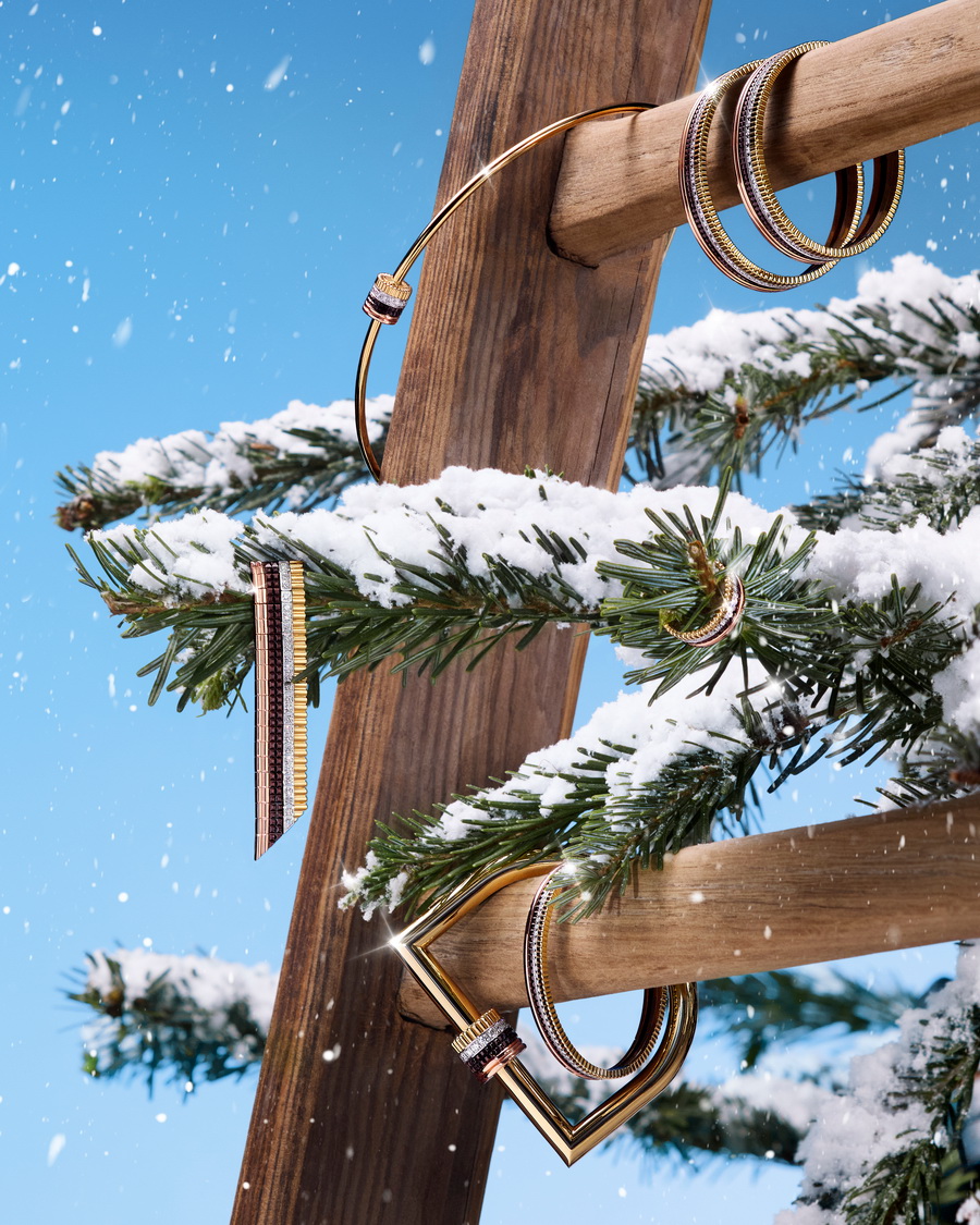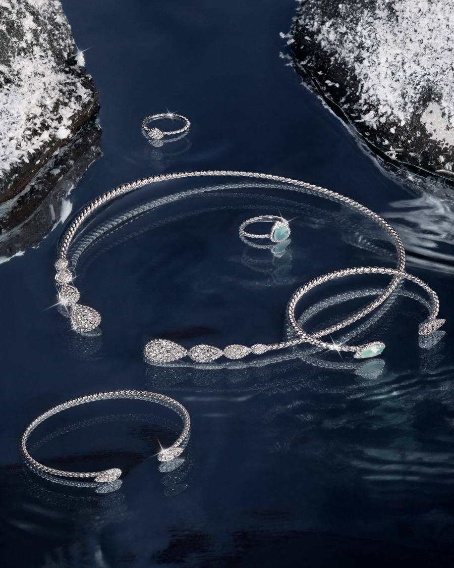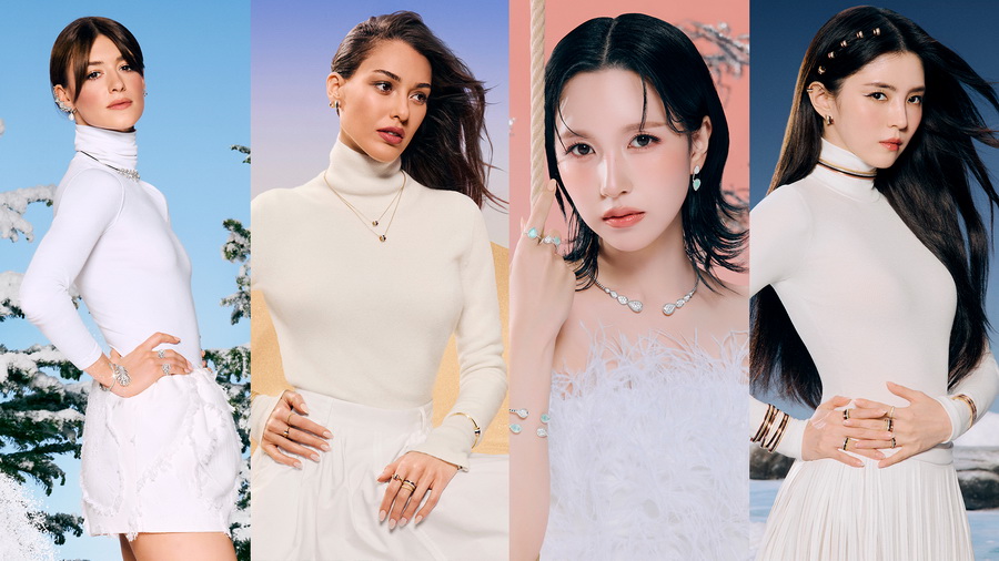 Mina เปล่งประกายท่ามกลางหิมะขาวบริสุทธิ์ด้วยชิ้นงานจากคอลเลกชัน ‘Serpent Bohéme Diamant’ และ ‘Serpent Bohéme Aquaprase’ ที่ผสมผสานความงดงามของเพชรและอัญมณีสีอควอมารีนได้อย่างลงตัว ก่อนเผยลุคคอนทราสต์ผ่าน ‘Quatre Classique Tube’ ที่สะท้อนความร่วมสมัยในแบบของเธอ