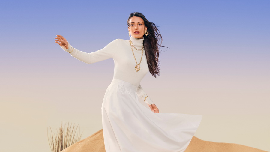 Dilan Çiçek Deniz เปล่งประกายท่ามกลางแสงสีทองของทะเลทรายด้วยคอลเลกชัน ‘Serpent Bohéme’ หนึ่งในผลงานไอคอนิกที่สืบทอดความงามเหนือกาลเวลามาตั้งแต่ปี 1968 ทั้งยังเพิ่มมิติของความสง่างามด้วยชิ้นงานจาก ‘Quatre Classique’ ที่สะท้อนพลังและความมั่นใจของหญิงสาวยุคใหม่