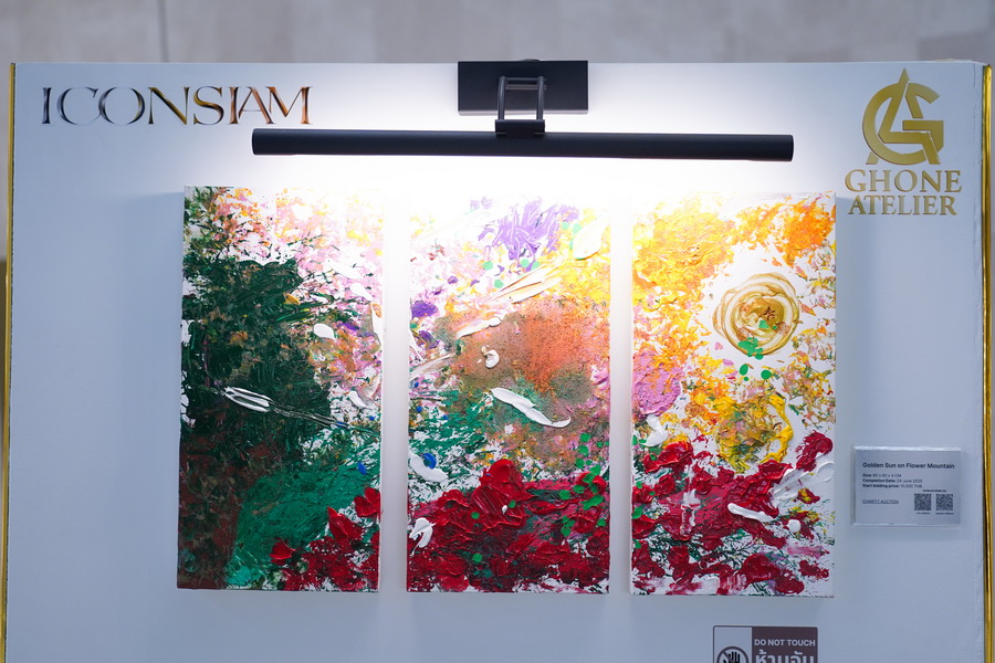 พร้อมเปิดโอกาสให้ผู้สนใจร่วมประมูลผลงาน 5 ชิ้น ได้แก่ Dirty Cars, Golden Sun on Flower Mountain, Pastel Earth, Colourful Tree และ Space Splash โดยรายได้หลังหักค่าใช้จ่าย 50% จะนำไปบริจาคให้ โรงเรียนวัดโรง (ขาวประชาสรรค์) อำเภอกระแสสินธุ์ จังหวัดสงขลา รวมถึงโรงเรียนอื่นๆ ต่อไป สามารถร่วมประมูลได้ถึงวันที่ 20 ธันวาคม 2568 ติดตามรายละเอียดผ่าน Facebook ‘Ghone Atelier’