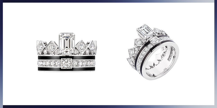 ผลงานโดดเด่นด้วยเพชรทรงเหลี่ยมเอเมอรัลด์ขนาด 2 กะรัต สะท้อนความหรูหราอย่างมีเอกลักษณ์ เสริมความสง่างามด้วยเทคนิคการเคลือบ สีดำเงา (Black Lacquer) ที่ให้กลิ่นอายของความแข็งแกร่งและความร่วมสมัยอย่างลงตัว นับเป็นอีกหนึ่งผลงานล้ำค่าที่สะท้อนความเป็น ‘Crowned with Triumph’ ของ Chaumet ได้อย่างงดงาม