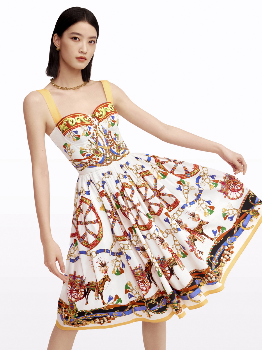 คอลเลกชันประกอบด้วยเสื้อผ้าและแอ็กเซสซอรี่หลากหลาย ตั้งแต่ชุดนอน เสื้อเชิ้ต กระโปรงทรงดินสอ ไปจนถึงเดรส ที่โดดเด่นด้วยลายม้า รถม้า ล้อประดับ ลายเลมอน และลายดอกไม้ ผสานแพตเทิร์น Carretto Siciliano บนพื้นสีขาวและสีดำ เสริมด้วยกระเป๋า My Sicily และรองเท้า Devotion ในเฉดสีแดงอันเป็นมงคล โดยคอลเลกชัน 2026 Chinese New Year Special Collection วางจำหน่ายแล้ววันนี้ที่บูติก Dolce&Gabbana และทางเว็บไซต์ dolcegabbana.com