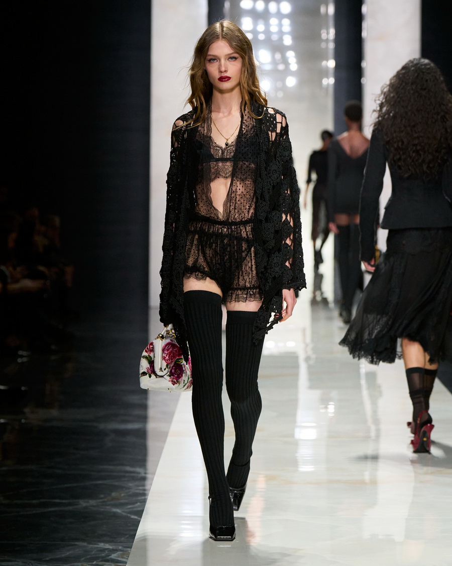 ในส่วนของแอ็กเซสเซอรี คอลเลกชันนี้นำเสนอการผสมผสานระหว่างความเท่แบบบุรุษและความสง่างามของผู้หญิง ผ่านรองเท้าหนังผูกเชือกทรงเตี้ย รองเท้าส้นสูงหัวแหลม รวมถึงถุงน่องดีไซน์หลากหลายที่ช่วยสร้างมิติให้กับลุคบนรันเวย์ กระเป๋ารุ่นใหม่ยังสะท้อนเสน่ห์ของแบรนด์อย่างชัดเจน ไม่ว่าจะเป็น My Sicily Bag ที่รังสรรค์จากวัสดุคุณภาพสูงด้วยงานฝีมือประณีต รวมถึง Dina Bag และ Carla Bag ที่นำเทคนิคโครเชต์และงานสานมาผสานเข้ากับหนังอย่างมีมิติ ตอกย้ำเอกลักษณ์ของ Dolce&Gabbana ที่ผสานความงามแบบซิซิลี งานฝีมือชั้นสูง และความร่วมสมัยเข้าไว้ด้วยกันอย่างสมบูรณ์แบบ