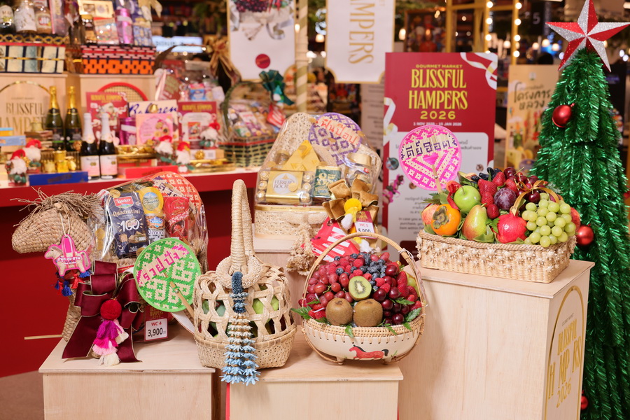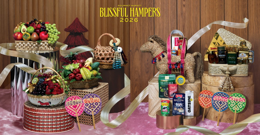 ภายใต้แคมเปญ ‘Gourmet Market Blissful Hampers 2026’ กูร์เมต์ มาร์เก็ต ยังได้คัดสรรกระเช้าของขวัญกว่า 140 รูปแบบ ครอบคลุมตั้งแต่กระเช้าผลิตภัณฑ์พรีเมียม กระเช้าผลไม้สด สินค้าเอ็กซ์คลูซีฟ ไปจนถึงชุดอาหารสำหรับช่วงเวลาแห่งความสุข พร้อมบริการจัดส่งทั่วประเทศ ตลอดจนบริการ Shop & Ship ทั้งในประเทศและต่างประเทศ เพื่อส่งต่อคำอวยพร ความหมาย และคุณค่าของ ‘มรดกหัตถศิลป์ไทย’ ให้เดินทางไปถึงผู้รับอย่างงดงามและทรงคุณค่า