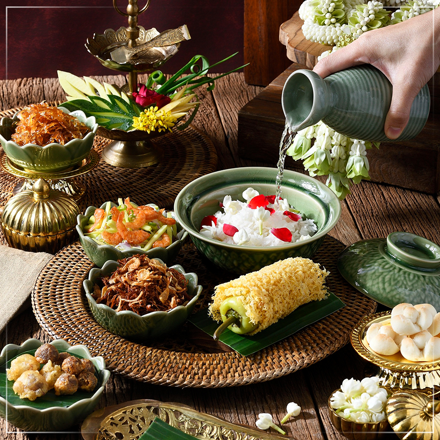 สำรับข้าวแช่ตำรับชาววังพร้อมเสิร์ฟทุกวัน ตั้งแต่วันที่ 5 มีนาคม – 30 เมษายน 2569 เวลา 12.00 – 15.00 น. โดยมีให้เลือกทั้งรับประทานที่ห้องอาหาร ราคา 990++ บาทต่อชุด สำหรับ 1 ท่าน, Takeaway Box ราคา 1,290++ บาทต่อชุด และ Takeaway Basket พร้อมตะกร้ากระจูดดีไซน์เก๋ ราคา 1,990++ บาทต่อชุด พิเศษ รับฟรีขนมกลีบลำดวนรังสรรค์โดยทีมเชฟครัวไทย เมื่อสั่งข้าวแช่ 1 ชุด