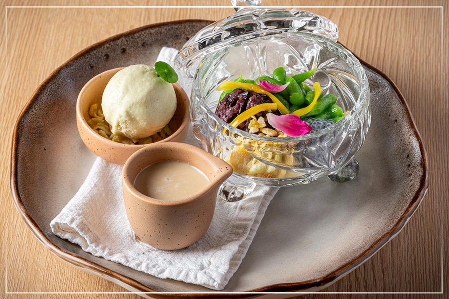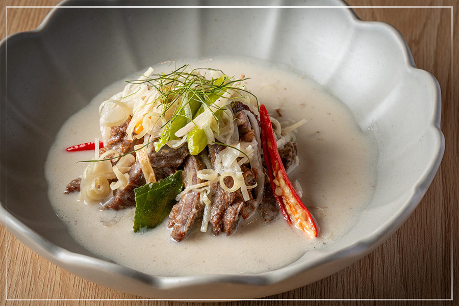 สำหรับเมนูพิเศษในครั้งนี้ เชฟเอียนได้เลือกสรรอาหารที่เคยเป็นส่วนหนึ่งของประเพณีพื้นบ้านหรือแทบจะสูญหายไปจากความทรงจำ มารังสรรค์ใหม่ให้กลับมามีชีวิตอีกครั้ง ไม่ว่าจะเป็น ยำหนังหมูหอยเชลล์ ที่นำหนังหมูกรุบกรอบมาผสมกับหอยเชลล์เนื้อนุ่ม เพิ่มรสสัมผัสกลมกล่อมด้วยปลากรอบ, แกงระแวงเนื้อซี่โครงตุ๋น แกงไทยโบราณในสมัยรัชกาลที่ 5 ที่ได้แรงบันดาลใจจากแกงชวา, แกงจืดเงาะยัดไส้ ที่ใช้เนื้อเงาะสุราษฎร์ธานีเป็นวัตถุดิบหลัก, แสร้งว่ากุ้งแม่น้ำปลาฟู ที่ผสมผสานรสชาติระหว่างภาคใต้และภาคกลางอย่างลงตัว และ เนื้อกะทิต้มเค็ม เมนูที่ใช้เนื้อแดดเดียวต้มกับกะทิสดจากอัมพวาจนได้รสเข้มข้นละมุนลิ้น