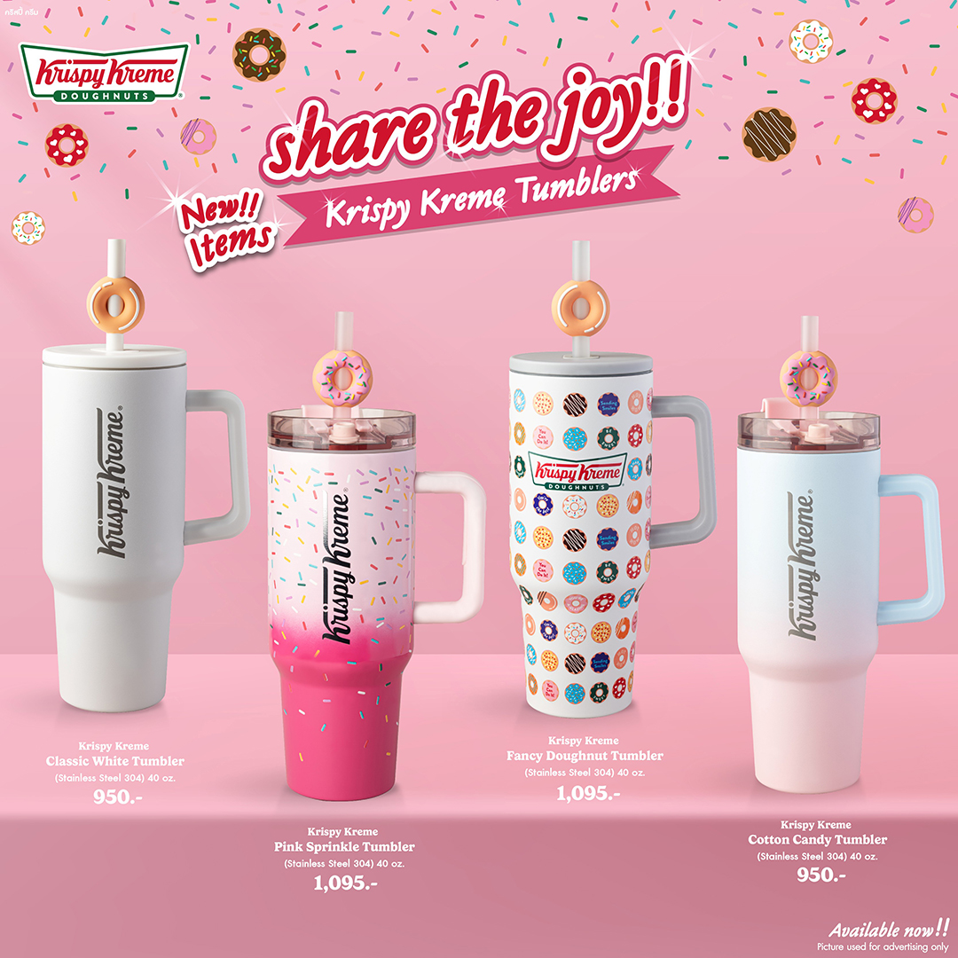 เป็นเจ้าของ ‘Share The Joy Krispy Kreme Tumblers’ ได้แล้ววันนี้ที่ร้านคริสปี้ ครีม กว่า 50 สาขา ทั้งกรุงเทพฯ และต่างจังหวัด หรือสั่งผ่านแอปพลิเคชันฟู้ดดิลิเวอรี พร้อมติดตามข่าวสารและสินค้าใหม่ๆ ได้ที่ www.krispykreme.co.th และ www.facebook.com/krispykremethailandfanpage