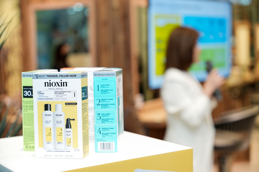 ภายในงานได้ถ่ายทอดองค์ความรู้เกี่ยวกับผลิตภัณฑ์ NIOXIN® PROCLINICAL ซึ่งโดดเด่นด้วยส่วนผสมอันทรงประสิทธิภาพ อาทิ Niacinamide, Caffeine และ Biotin ที่ช่วยฟื้นบำรุงรากผมให้แข็งแรง เพิ่มความหนาแน่น และกระตุ้นการเจริญเติบโตของเส้นผมอย่างล้ำลึก พร้อมการสาธิตทรีทเมนต์ NIOXIN Scalp Renew Dermabrasion ไฮไลต์สำคัญที่ช่วยผลัดเซลล์หนังศีรษะอย่างอ่อนโยน ฟื้นคืนสมดุล และกระตุ้นให้เกิดการงอกใหม่ของเส้นผมได้อย่างเป็นธรรมชาติ ซึ่งบริการนี้สงวนไว้สำหรับซาลอนที่ผ่านการอบรมจาก NIOXIN เท่านั้น