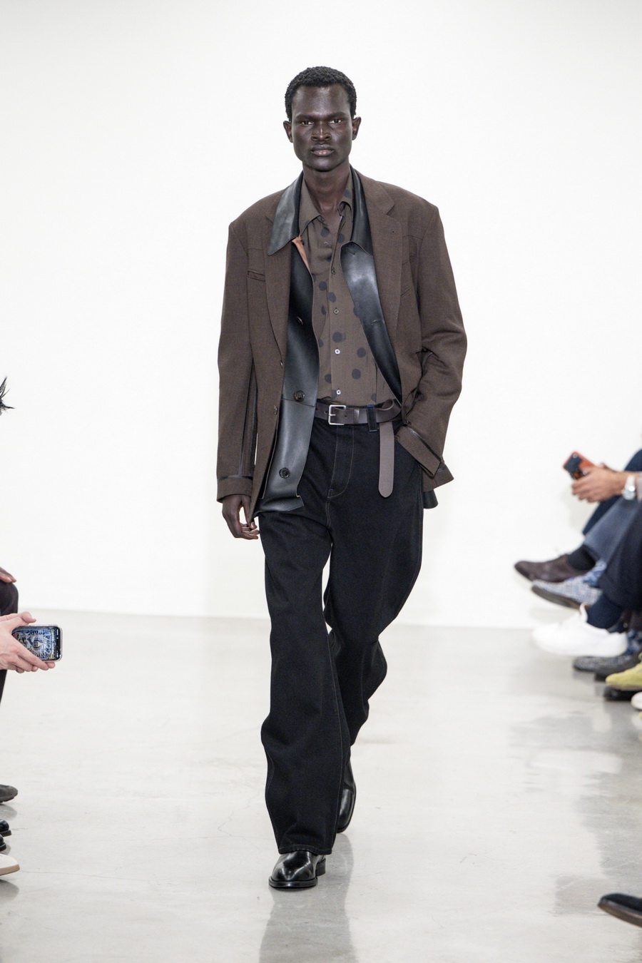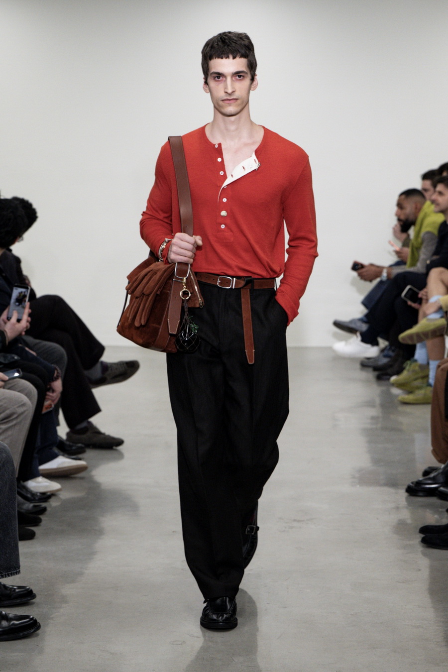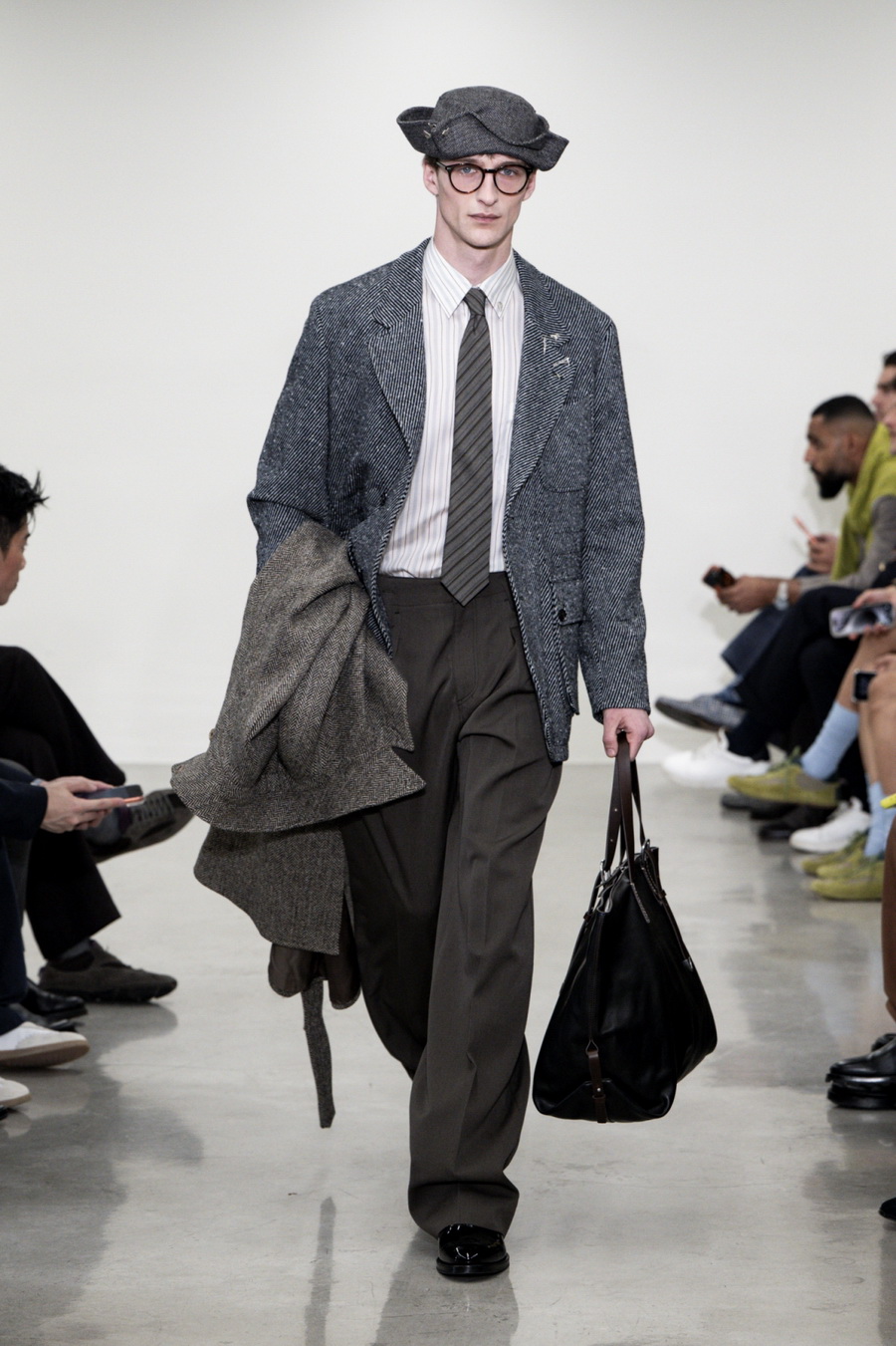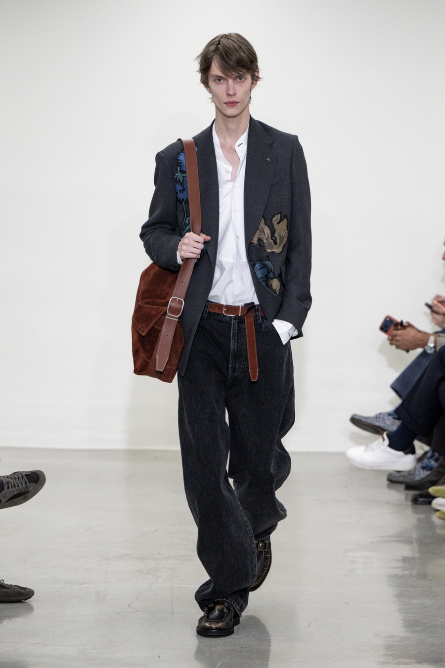 ซิลูเอตสูทและงานเทเลอริ่งจากยุค 80s–90s ถูกนำมาตีความใหม่ให้คมชัดและร่วมสมัยยิ่งขึ้น ไฮไลต์อยู่ที่การแยกโครงสร้างเสื้อผ้าให้เผยรายละเอียดด้านใน สะท้อนความกล้าที่จะท้าทายกรอบการแต่งกายแบบคลาสสิก พร้อมเติมเสน่ห์แบบอังกฤษด้วยผ้า Harris Tweed และ Donegal ที่ช่วยเพิ่มมิติและความสนุกให้กับคอลเลกชัน