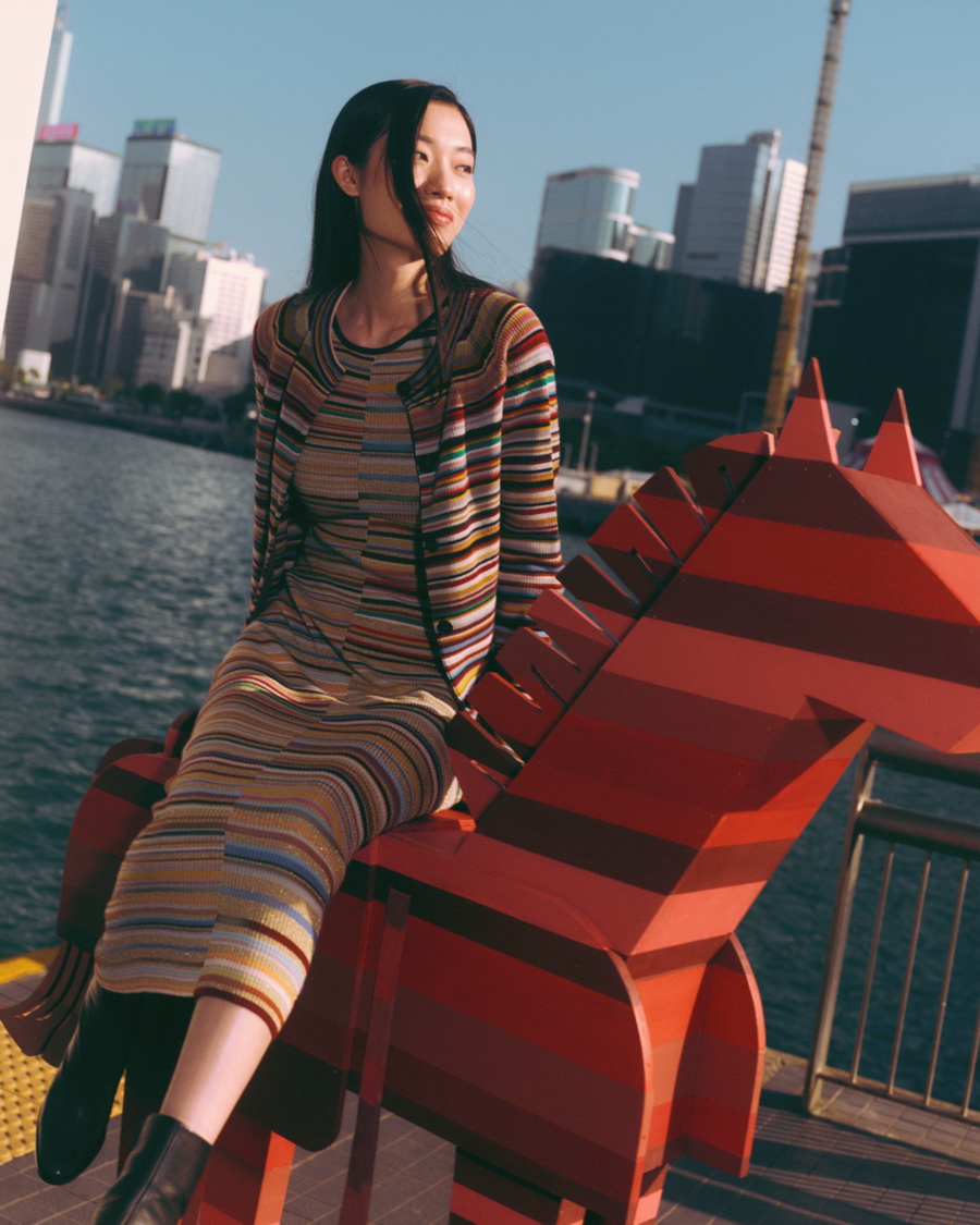 แฟชั่นเซ็ตของแคมเปญเลือกฮ่องกงเป็นฉากหลัง ถ่ายทอดสีสันและพลังของเมืองที่เคลื่อนไหวอย่างไม่หยุดนิ่ง ผ่านลุค ‘Casual Layers’ ที่ดูผ่อนคลายแต่แฝงด้วยสไตล์อันชัดเจน การมิกซ์แอนด์แมตช์โทนสีแดงซึ่งเป็นสีมงคลของตรุษจีนเข้ากับลายทางหลากสี (Multicolour Stripes) ช่วยขับภาพลักษณ์ของคอลเลกชันให้โดดเด่นยิ่งขึ้น พร้อมเสริมเรื่องราวด้วยประติมากรรมม้าไม้สีแดงเข้ม ตัวแทนของ ‘ม้าไฟ’ ที่สื่อถึงความมั่งคั่ง ความรุ่งเรือง และคำอวยพรสำหรับการเริ่มต้นปีใหม่อย่างงดงาม