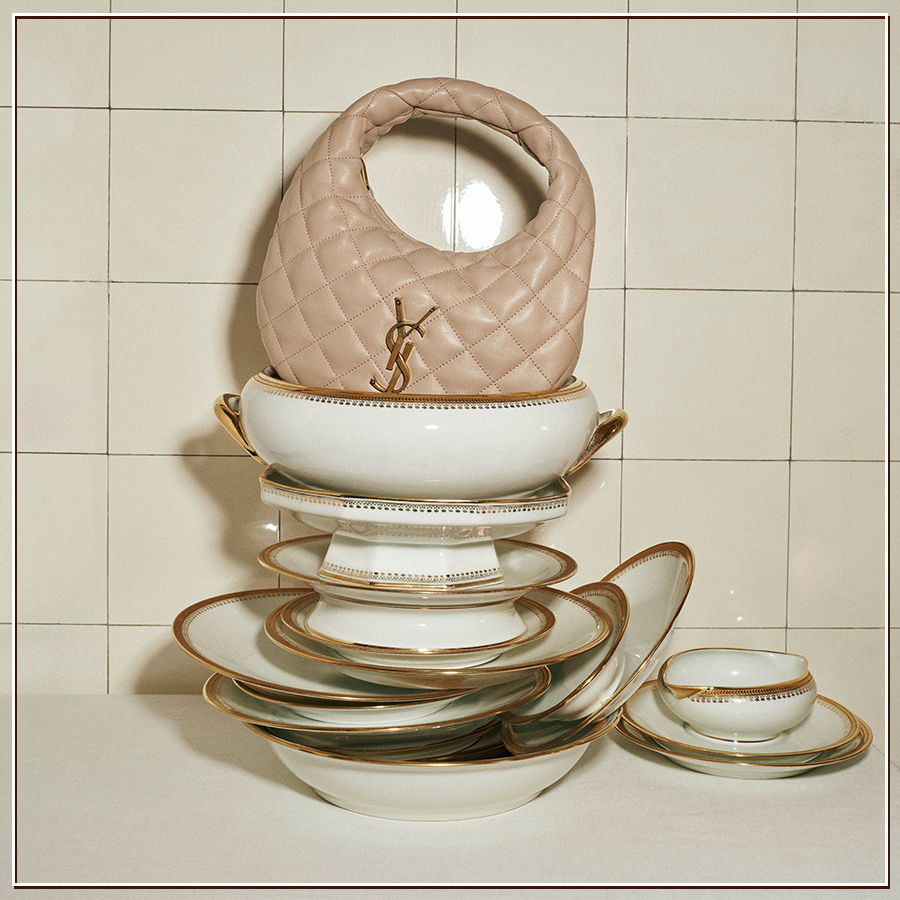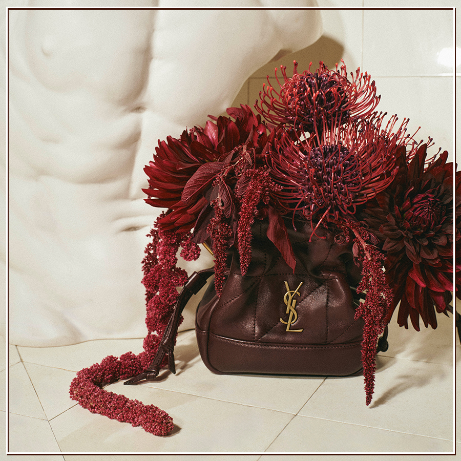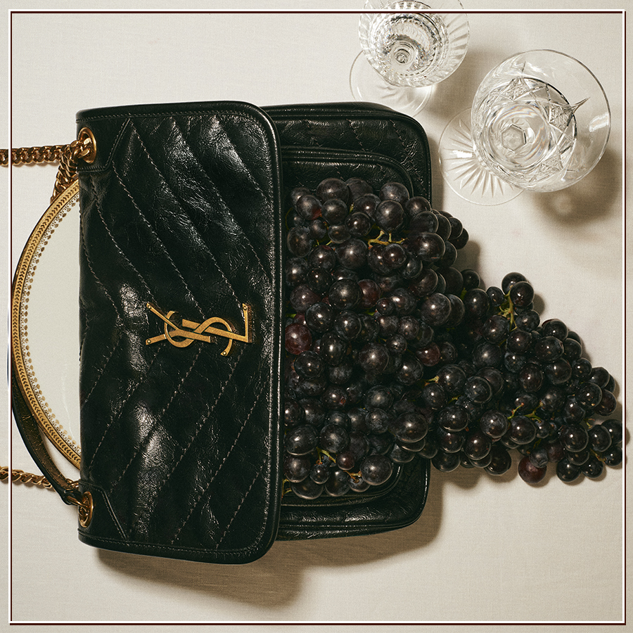ในแคมเปญนี้ ไอเท็มไฮไลต์ของแบรนด์ถูกนำมานำเสนออย่างเด่นชัด เริ่มจาก MINI JAMIE Shoulder Pouch กระเป๋าหนังแกะน้ำหนักเบาที่สะท้อนความมินิมัลหรูหราด้วยโลโก้ CASSANDRE และงานเย็บ CARRÉ RIVE GAUCHE พร้อมเชือกรูดด้านข้างที่ปรับซิลูเอตได้หลากหลาย ต่อด้วย NIKI Medium กระเป๋าหนังแกะลายเชฟรอนควิลต์ในสไตล์วินเทจ ซึ่งให้ฟังก์ชันครบครันด้วยสองช่องหลัก ช่องแบนด้านหลัง และสายหนังผสมโซ่ปรับระดับได้ เหมาะสำหรับลุคตั้งแต่กลางวันจนถึงกลางคืน