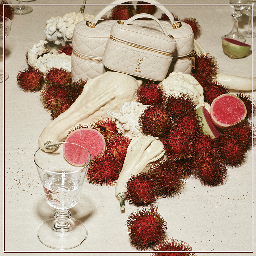 Saint Laurent ภายใต้การดูแลของ Anthony Vaccarello ถ่ายทอดภาพจำของความหรูหราเหนือกาลเวลาในแคมเปญส่งท้ายปี ‘Nocturnal Temptation’ ผ่านบรรยากาศที่งดงามด้วยแสงและเงาอันประณีต เผยเสน่ห์แห่งความลึกลับ เย้ายวน และทรงพลังในแบบฉบับของแบรนด์ ทุกองค์ประกอบถูกจัดวางอย่างมีจังหวะ ตั้งแต่ไอเท็มชิ้นเด่นไปจนถึงรายละเอียดศิลปะอย่างเครื่องแก้ว ผลไม้ และดอกไม้โทนเข้ม ที่ช่วยขับความตัดกันระหว่างความเรียบง่ายตามธรรมชาติและงานฝีมือสุดประณีตในแบบ Saint Laurent ได้อย่างงดงาม