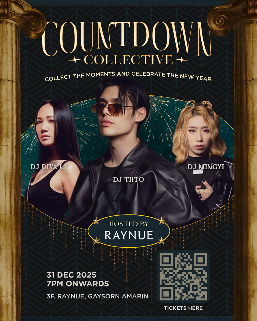 และ ‘Midnight Bloom – NYE Countdown Gathering’ ที่ Gaysorn Urban Resort ชั้น 19 เกษรทาวเวอร์ ปาร์ตี้นับถอยหลังสุดเอ็กซ์คลูซีฟพร้อมเหล่าดีเจจากเทศกาลระดับโลก ไม่ว่าจะเป็น Burning Man, Coachella, Tomorrowland และ Wonderfruit รวมถึง ‘Countdown Collective’ ที่ RAYNUE ชั้น 3 เกษรอัมรินทร์ ดื่มด่ำกับอาหาร เครื่องดื่ม และเสียงดนตรีบนเทอร์เรซใจกลางราชประสงค์