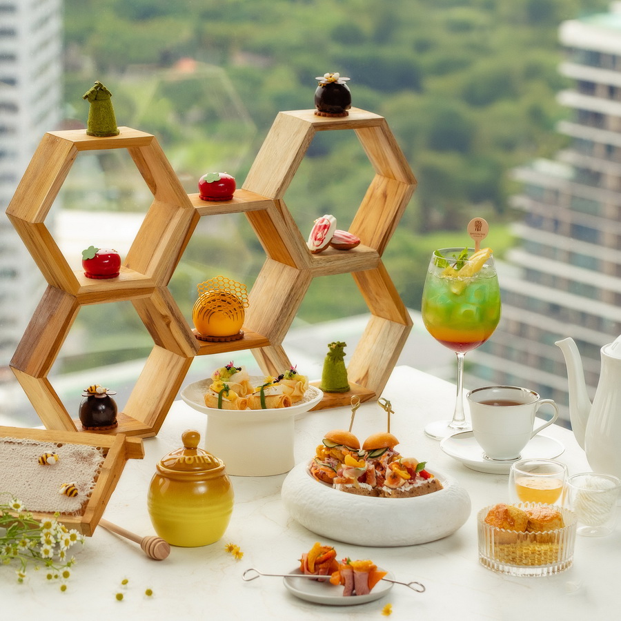 ชุดอาฟเตอร์นูนที ‘The Honey Bee Bloom & Buzz’ ให้บริการทุกวันเสาร์และอาทิตย์ เวลา 13.00-16.00 น. ราคา 1,690 บาทสุทธิ ต่อเซ็ต สำหรับ 2 ท่าน สามารถเพิ่มการจับคู่อินเทอร์เมซโซด้วยสปาร์กลิงไวน์ ราคา 1,990 บาทสุทธิ สำหรับ 2 แก้ว หรือ 2,500 บาทสุทธิ ต่อ 1 ขวด