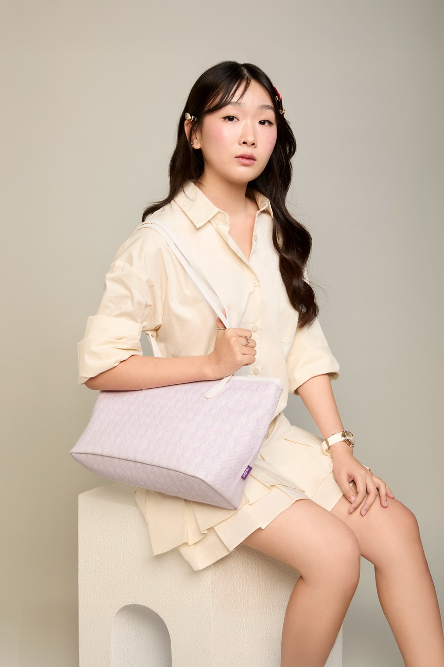 • LYN โดย คุณเบญญา กรรณทิพย์สกุล ถ่ายทอดลาย ‘Infinite Love’ บนกระเป๋าสะพายรูปหัวใจที่ต่อกันเป็นใบโคลเวอร์ 4 แฉก สื่อถึงศรัทธา ความหวัง ความรัก และความโชคดี