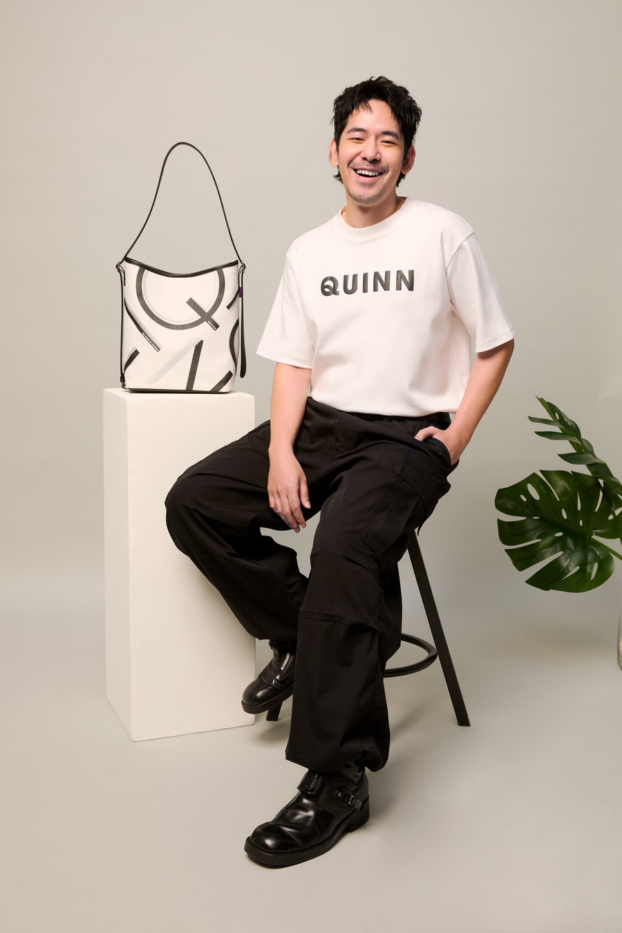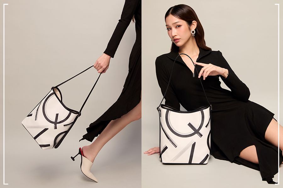 • Quinn โดย คุณเกื้อบุญ ชวนบุญ ถ่ายทอดแนวคิด ‘สายใยแห่งการให้’ บนกระเป๋าทรงถัง ด้วยลวดลายตัวอักษร Q ที่เรียงร้อยกันเป็นสัญลักษณ์แห่งความเป็นหนึ่งเดียว