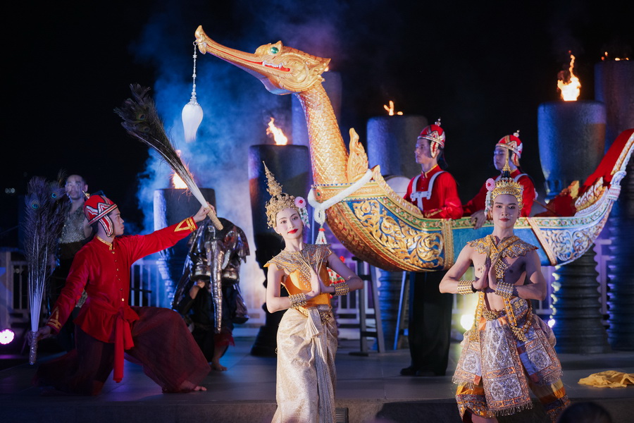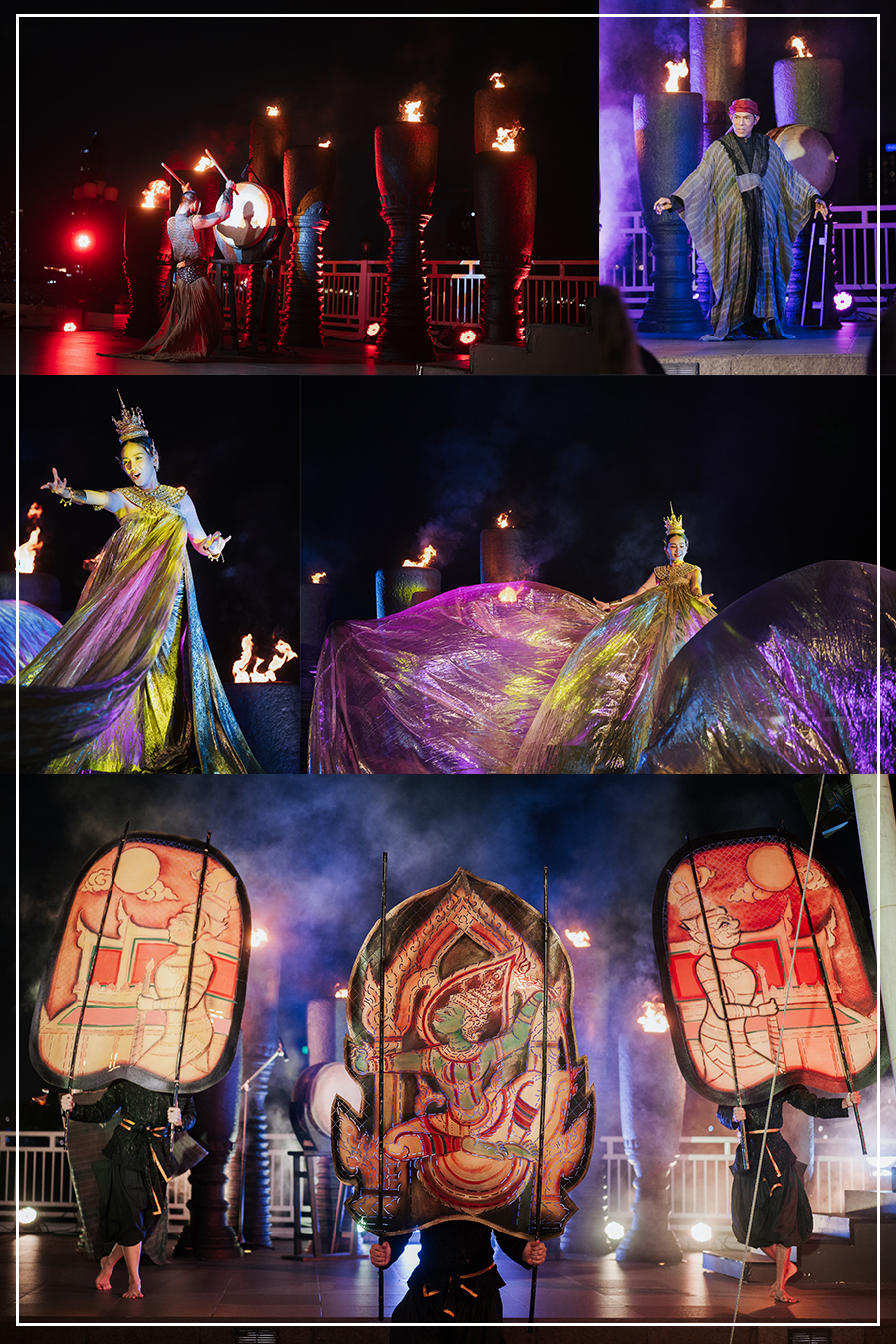 หัวใจสำคัญของค่ำคืนนี้คือการแสดง ‘สุวรรณสยามนิรันดร์กาล’ (The Eternal Siam) ผลงานชิ้นเอกของ ‘ครูนาย – มานพ มีจำรัส’ ศิลปินศิลปาธร สาขาศิลปะการแสดง จากกระทรวงวัฒนธรรม ที่รังสรรค์ขึ้นเพื่อถ่ายทอดเรื่องราวแห่งความรุ่งเรืองและจิตวิญญาณของสยามประเทศ ผ่านการผสมผสานระหว่างนาฏกรรมไทยร่วมสมัยและดนตรีประกอบอันทรงพลัง ให้ผู้ชมได้ดื่มด่ำไปกับเรื่องราวอันเป็นนิรันดร์ของชาติไทย การแสดงแบ่งออกเป็น 5 องก์ โดยได้รับแรงบันดาลใจจากความหมายของคำว่า ‘อนันตรา’ ซึ่งหมายถึง ‘สายธารแห่งไมตรีอันไม่สิ้นสุด’ ถ่ายทอดคุณค่าของสายน้ำ แผ่นดิน และวัฒนธรรม ผ่านท่วงท่าการร่ายรำและจังหวะดนตรีที่งดงามเหนือคำบรรยาย เริ่มต้นด้วย บทโหมโรง: ยลโฉมบุปผามาลีราชินี (Behold The Flower Queen) ที่เปิดม่านสู่ค่ำคืนอันมหัศจรรย์ ก่อนจะพาผู้ชมสัมผัสเรื่องราวในแต่ละองก์ ได้แก่ เทวีแห่งสายธารา (The River Goddess), มหัศจรรย์หนังใหญ่และร่างเงาแห่งไอยรา (The Marvel of Nang Yai and Echoes of The Elephant), สืบสานประเพณี (Flowing Traditions), สายธาราแห่งราชันย์ (The Royal River) และ ปัจฉิมบทอันเรืองรอง (A Golden Finale) ที่ปิดท้ายอย่างยิ่งใหญ่ด้วยพลังแห่งศิลปะและความงามอันเป็นนิรันดร์ของสุวรรณภูมิ