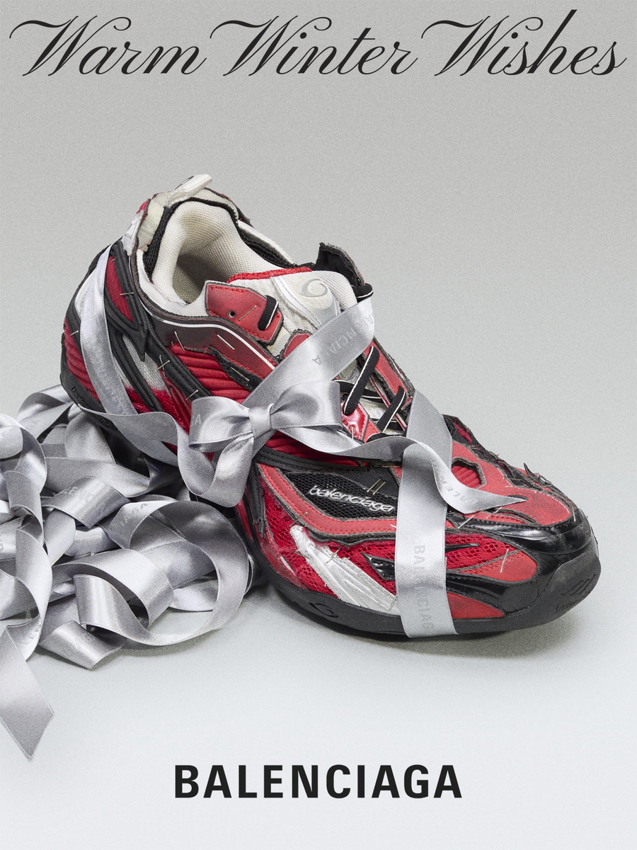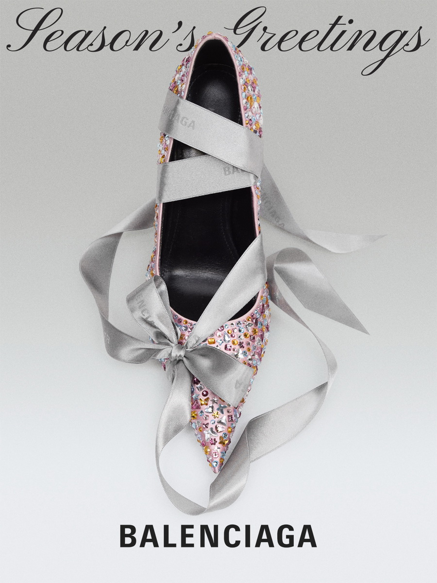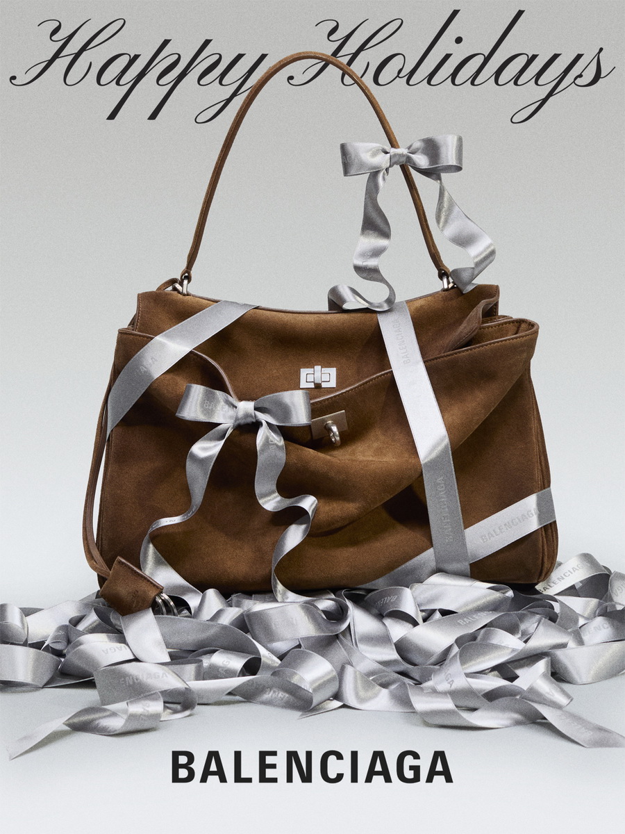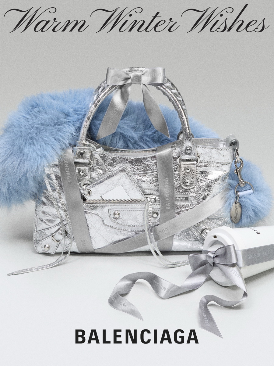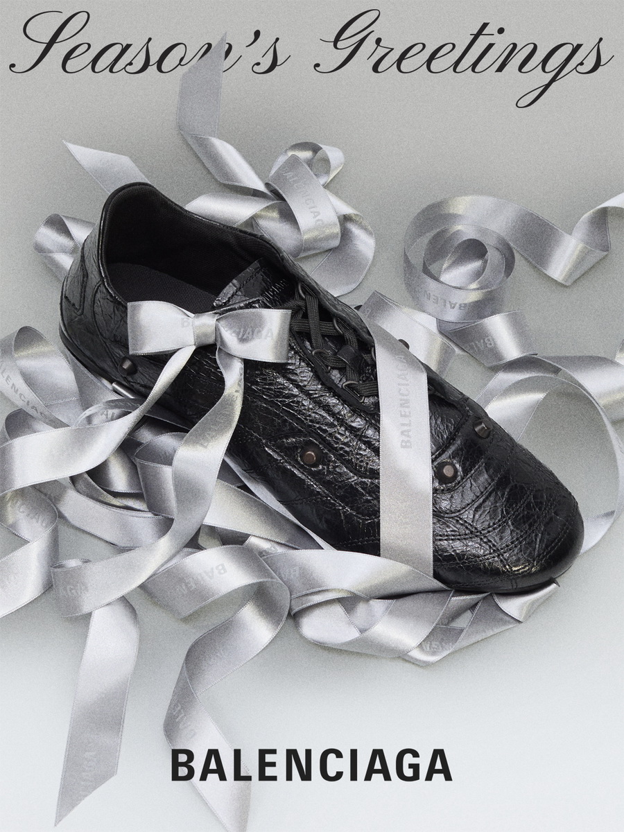 Balenciaga เปิดตัวแคมเปญ ‘Season of Ribbons’ ต้อนรับเทศกาลวันหยุดปลายปี ด้วยการหยิบเอาเอกลักษณ์ของการห่อของขวัญสุดคลาสสิกมาตีความใหม่ ผ่านลูกเล่นการตกแต่งริบบิ้นและโบว์สีเงินผ้าซาติน สะท้อนบรรยากาศแห่งความรื่นเริงอันหรูหรา