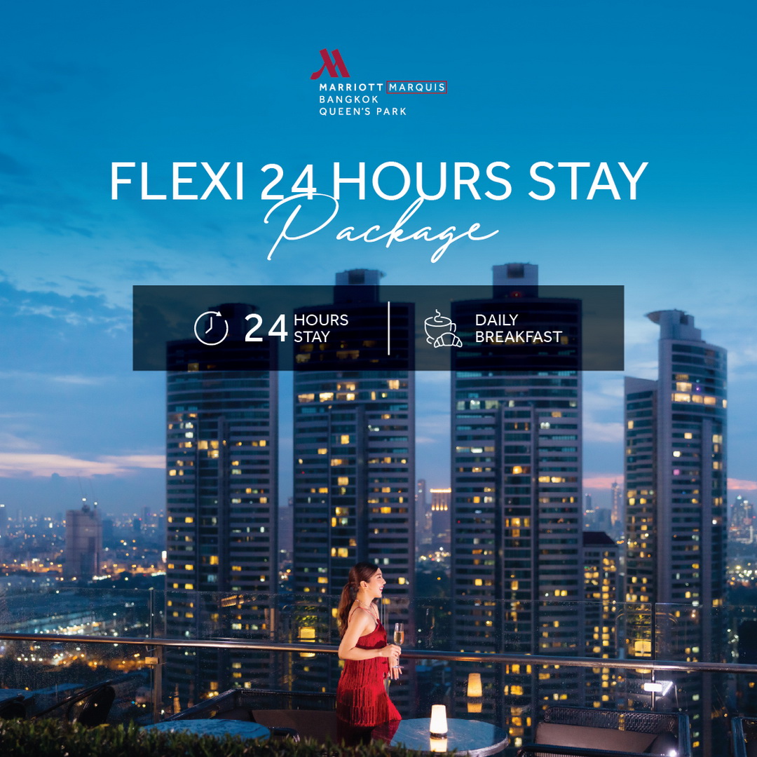 Bangkok Marriott Marquis Queen’s Park แลนด์มาร์กใจกลางสุขุมวิท เปิดตัวแพ็กเกจห้องพัก ‘Flexi 24 Hours Stay’ ที่ออกแบบมาเพื่อตอบโจทย์ไลฟ์สไตล์การเดินทางยุคใหม่ ด้วยแนวคิดการพักผ่อนที่ยืดหยุ่น ผู้เข้าพักสามารถเลือกเวลาเช็กอินได้ตามสะดวก พร้อมเข้าพักเต็ม 24 ชั่วโมง และเช็กเอาต์ในเวลาเดียวกันของวันถัดไป ให้ทุกช่วงเวลาของการพักผ่อนเป็นไปอย่างอิสระ ไม่ว่าจะเป็นการเดินทางเพื่อธุรกิจ การพักผ่อนในเมือง หรือการแวะพักระยะสั้น