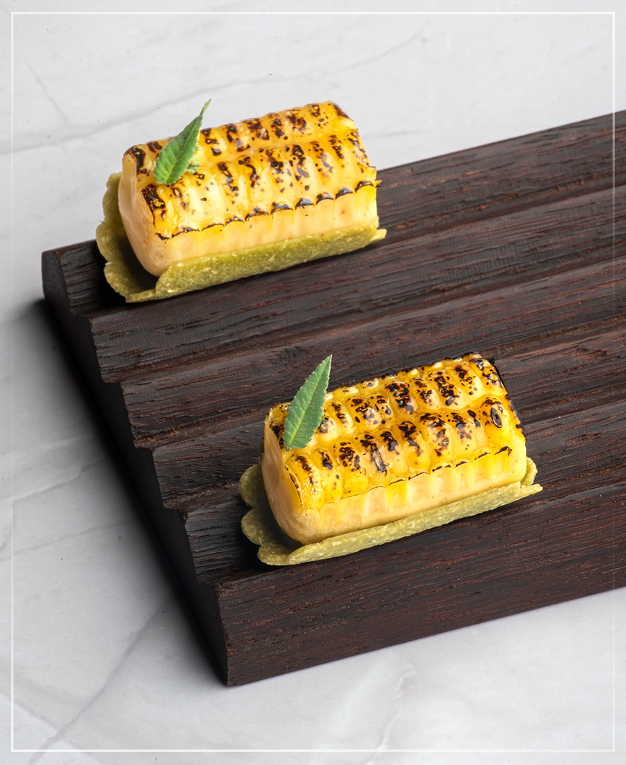 การเดินทางของรสชาติเริ่มต้นอย่างนุ่มนวลด้วย House-Made Kombucha ที่สะท้อนความสดใหม่ของวัตถุดิบประจำสัปดาห์ ก่อนเปิดมิติของฤดูกาลผ่าน Canapé Selection ที่ถ่ายทอดความทรงจำและแรงบันดาลใจจากหลากหลายวัฒนธรรม ไม่ว่าจะเป็นความละเมียดละไมของข้าวโพดหวานย่างกับชีสรสเข้มข้น กลิ่นหอมของสมุนไพรที่เติมมิติให้ผักพื้นบ้าน ไปจนถึงวัตถุดิบชั้นเลิศอย่างหอยนางรมจากฝรั่งเศส และเนื้อวากิวที่รังสรรค์อย่างประณีตในคำเล็กๆ ที่เต็มไปด้วยรายละเอียด