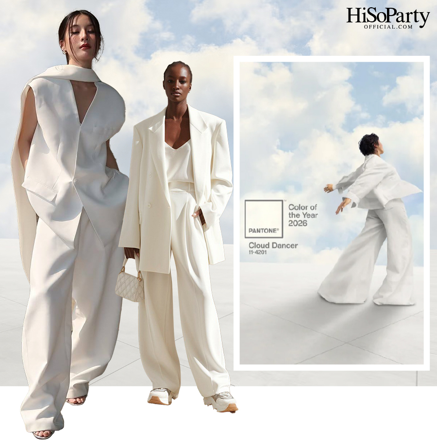 ‘PANTONE 11-4201 Cloud Dancer’ รหัสสีขาวนุ่มนวลราวปุยเมฆที่แฝงไว้ด้วยความรู้สึกสงบ สะท้อนความสมดุลของธรรมชาติกับเทคโนโลยี พร้อมหันกลับมาสู่ความสงบและการให้ความสำคัญกับโลกภายในของผู้คน ‘Cloud Dancer’ จึงเป็นสีแห่งปีที่สื่อถึงความสงบ เรียบง่าย และการเริ่มต้นใหม่