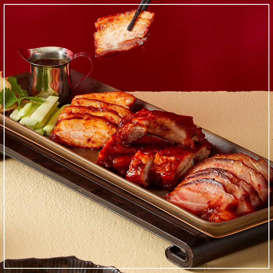 เริ่มต้นมื้อแห่งความเป็นสิริมงคลด้วย ‘หยี่ซังโล้’ (688++ บาท) สลัดมงคลตามธรรมเนียมจีนโบราณที่เปี่ยมด้วยสีสันและความหมาย โดยแขกผู้ร่วมโต๊ะจะได้ร่วมกันคลุกเคล้าส่วนผสมให้สูงขึ้น สื่อถึงการชูโชคลาภและคำอธิษฐานให้ชีวิตรุ่งเรืองตลอดปี ต่อด้วย ‘บาร์บีคิวหมูแดงสไตล์ฮ่องกง 3 อย่าง’ (688++ บาท) ที่รวมหมูแดงรสเลิศ หมูกรอบชั้นดี และซี่โครงหมูอบเนื้อนุ่ม สัญลักษณ์แห่งความอุดมสมบูรณ์ พร้อมเสิร์ฟเมนูต้นตำรับที่ปรุงอย่างประณีต อาทิ ‘บะหมี่ไข่ซี่โครงหมูแดงและเนื้อปู’ (388++ บาท) ‘ข้าวหมูแดงสามชั้นอบหม้อดิน’ (388++ บาท) และ ‘ซุปเกี๊ยวน้ำหมูแดงและหมูสับ’ (388++ บาท) รสชาติกลมกล่อม ก่อนปิดท้ายด้วยของหวานมงคล ‘ขนมอังกู๊’ (288++ บาท) หรือ ขนมเต่าแดง ไส้ถั่วเขียวและมันหวาน ซึ่ง ‘เต่า’ เป็นสัญลักษณ์ของสุขภาพแข็งแรงและอายุยืนยาว