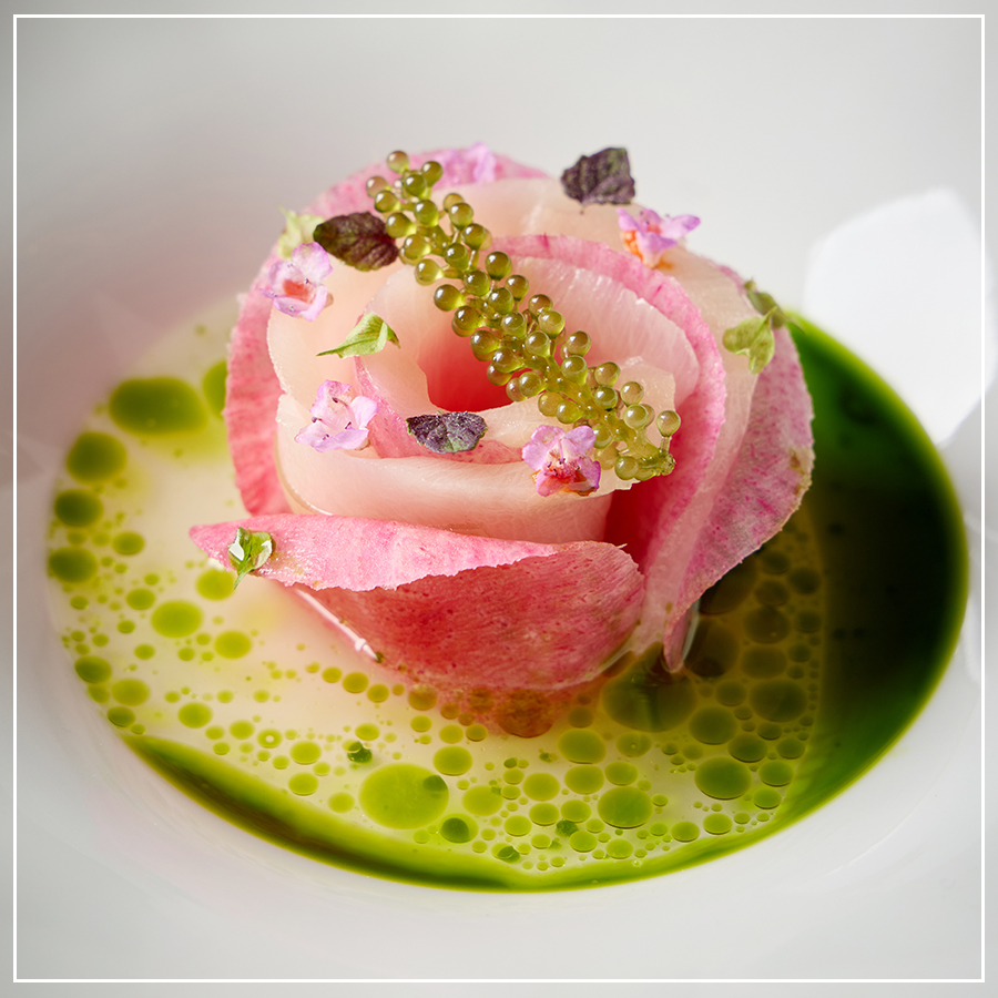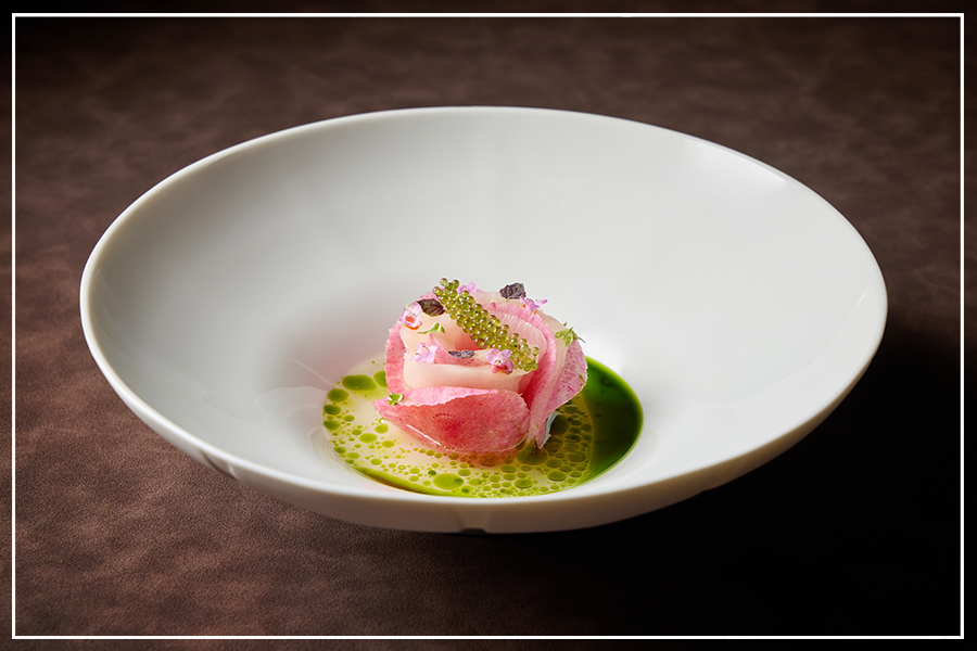 Serata Romantica ถูกถ่ายทอดผ่านเมนูวาเลนไทน์ 8 คอร์ส ที่คัดสรรวัตถุดิบชั้นเลิศจากทั่วโลก นำมาสร้างสรรค์ใหม่ในสไตล์อิตาเลียนที่เรียบหรูและสมดุล เริ่มต้นด้วยแชมเปญชั้นดี ตามด้วยซุปใสกงซอเมรสนุ่มนวล และของว่างพอดีคำอย่าง มอร์ทาเดลลากับพิสตาชิโอ ทาร์ตเล็ตล็อบสเตอร์ และเนื้อวากิวทานคู่กับแยมหอมแดง ก่อนเข้าสู่รสชาติแห่งท้องทะเลกับหอยนางรมสดเสิร์ฟพร้อมคาเวียร์ ปลา Ricciola ในซอสพานซาเนลลาที่ให้ความสดชื่น และหอยเชลล์เนื้อนุ่มในซอสแชมเปญ