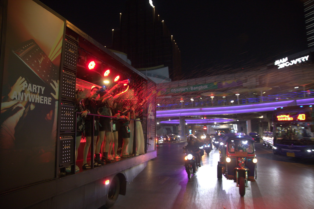ตลอดช่วงวันที่ 12, 13 และ 16 เมษายนที่ผ่านมา เส้นทางใจกลางเมืองและแลนด์มาร์กยอดนิยม ตั้งแต่สยามสแควร์ เซ็นทรัลเวิลด์ สีลม บรรทัดทอง เยาวราช ราชดำเนิน อุดมสุข แพรกษา ไปจนถึงชายหาดบางแสน ถูกแต่งแต้มด้วยจังหวะดนตรีและบรรยากาศแห่งความสนุกที่เกิดขึ้นแบบไม่คาดคิด ทุกครั้งที่ Party Truck ปรากฏตัว พื้นที่รอบข้างก็กลายเป็นเวทีแห่งความมันส์ในทันที